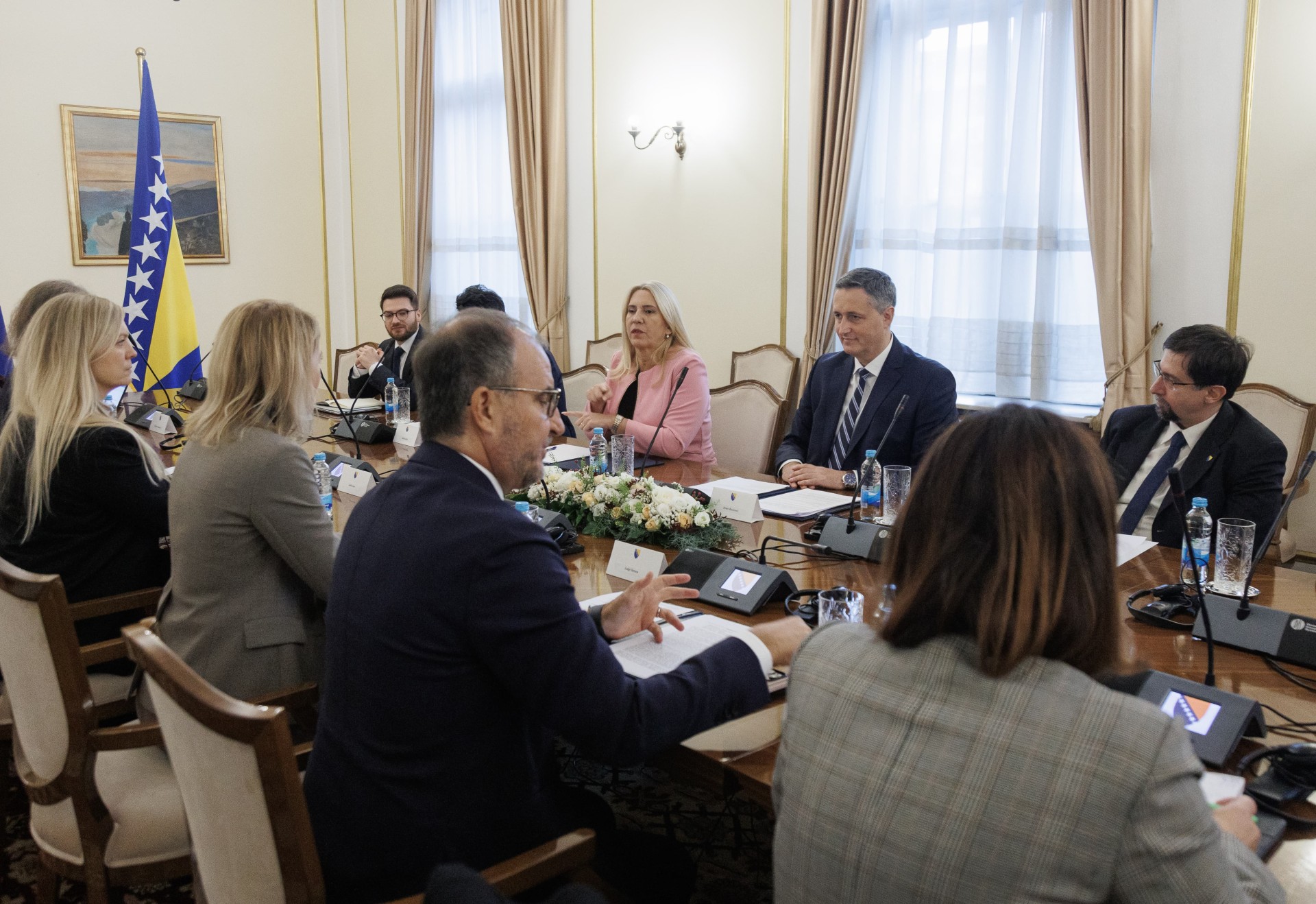 U razgovoru je naglašeno da članstvo u EU i NATO-u ostaju strateški vanjskopolitički ciljevi Bosne i Hercegovine. Pozdravio je nastavak finansijske i tehničke podrške EU kroz Plan rasta i mehanizme namijenjene jačanju institucija, ekonomije i vladavine prava.