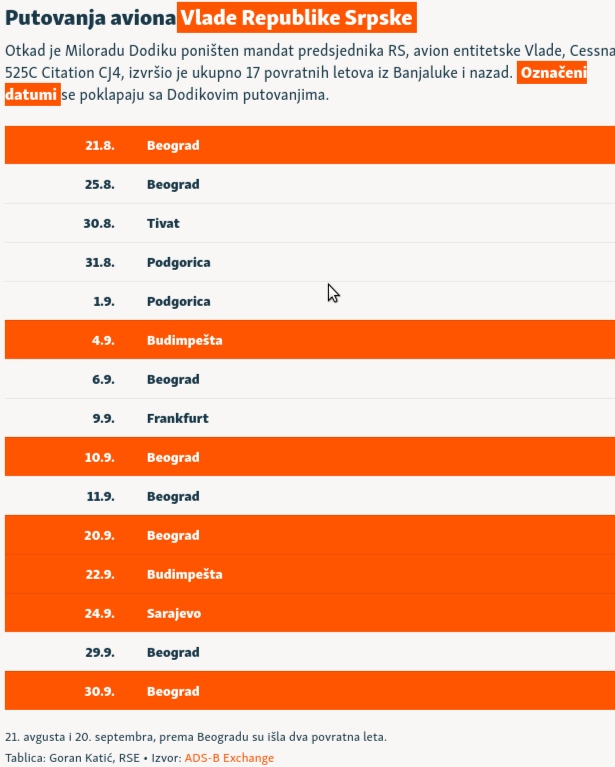 Do zaključenja teksta, iz Vlade Republike Srpske nije odgovoreno na upit RSE da li je Dodik koristio njihov avion prilikom ovih letova.