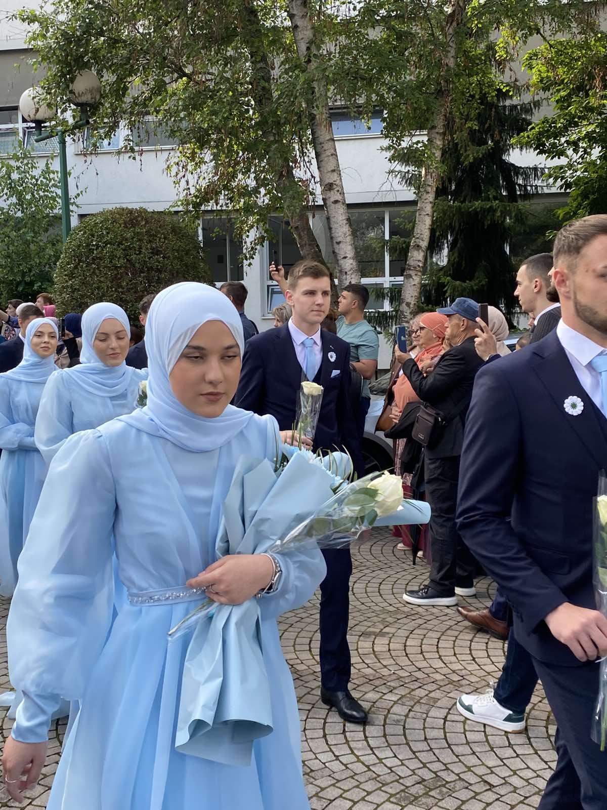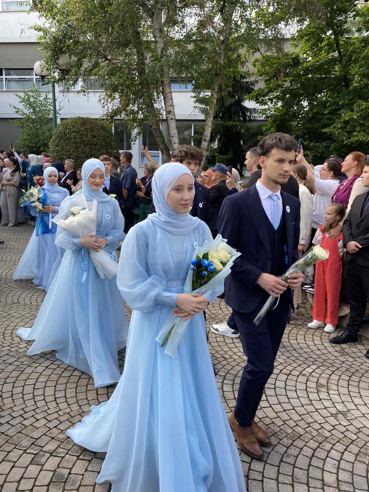Nakon toga, maturanti su se u svečanim haljinama i odijelima i sa cvijećem u ruci, zaputili prema portalu stare medrese na Skveru te Kapiji na Trgu prekinute mladosti do Džindić džamije. Tokom šetnje, učenici su zastali na Trgu prekinute mladosti, gdje su položili cvijeće, proučili fatihu i odali počast poginulima u masakru 25. maja 1995. godine.