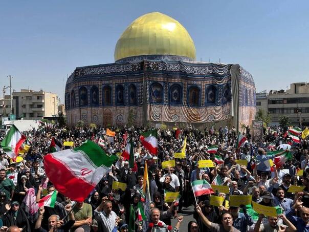 Nakon molitve u Teheranu uslijedili su veliki protesti u centru grada, a državna televizija prikazala je slike okupljenih koji gaze izraelske i američke zastave. Na ulicama su se vijorile i zastave Hezbolaha, saveznika Irana iz Libana.