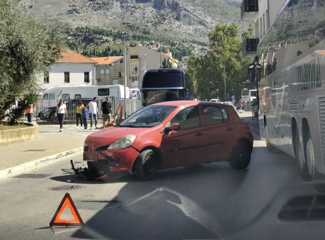 Nema povrijeđenih osoba u saobraćajnoj nesreći koja se danas dogodila kod Franjevačke Crkve u Mostaru. U nesreći su učestvovali vozilo marke Renault i VW Passat.