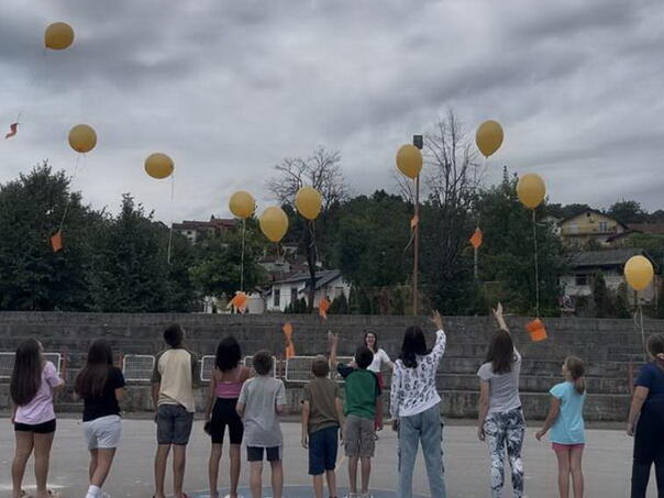 U drugom dijelu radionice, djeca su crtala i pisala poruke podrške ženama i djevojčicama koje su preživjele nasilje. Na kraju aktivnosti, poruke i crteži pričvršćeni su za narandžaste balone i zajedno pušteni ka nebu – kao simbol nade i podrške.