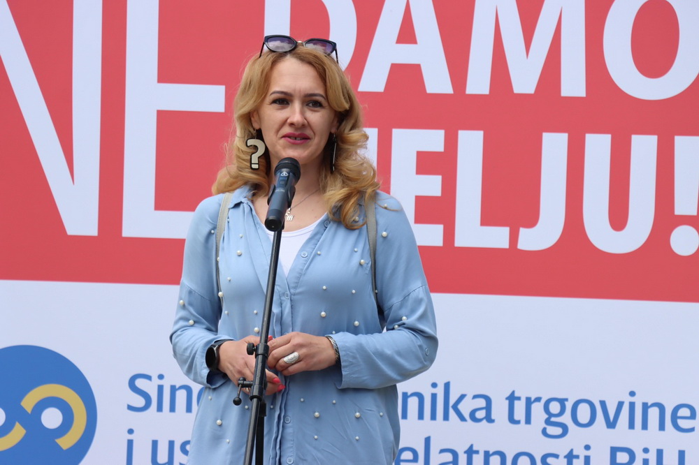 – Mi smo danas ovdje da kažemo da nema te politike koja će se igrati sa radnicima. Nema te politike koja sebi može dozvoliti luksuz da radnika tretira kao eksperirment, još manje da sebi može dopustiti da trguje s radnikom kao sa robom. Hoće da nas suprostave našim kolegama na pumpama, pekarama, resroranima.. Govore kada mogu medicinske sestre zašto ne mogu i trgovci. Ako nas slome sada, ponovo će biti šuti i trpi, rekla je.