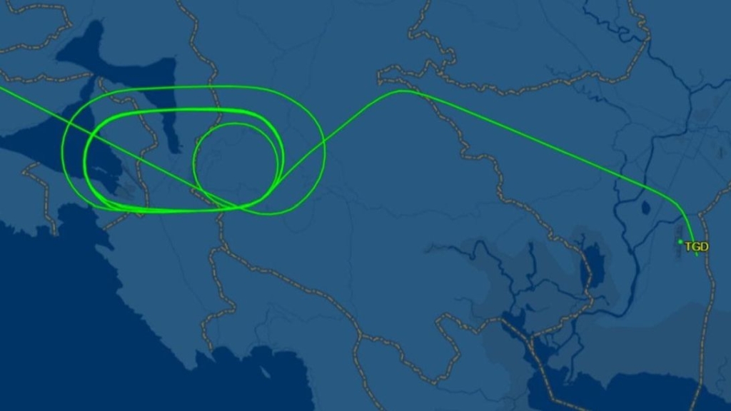 Avion sa fudbalerima Crne Gore, koje sa klupe predvodi Robert Prosinečki, pravio je krugove iznad Boke i Cetinja, sve dok se nije primaklo vrijeme tokom kojeg se otvara aerodrom i tada je pilot konačno krenuo prema Podgorici.