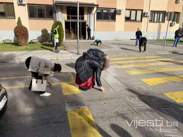 “Dosta je šutnje, dosta je neodgovornosti, dosta je žrtava”, “Ostavke”, poručili su okupljeni građani, porukama ispisanim na pločniku ispred zgrade policije.