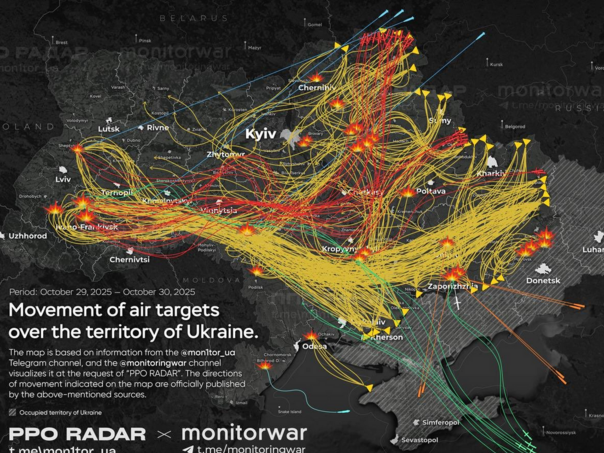 Ruske snage izvele su tokom noći s 29. na 30. oktobar snažan kombinovani napad na Ukrajinu, koristeći više od 700 dronova i raketa.