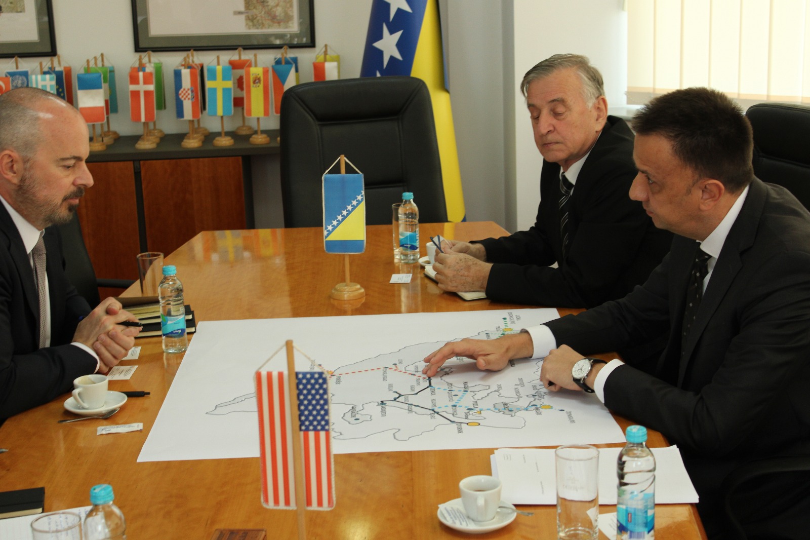 Federalni ministar energije, rudarstva i industrije Vedran Lakić sastao se danas sa otpravnikom poslova Ambasade Sjedinjenih Američkih Država u BiH, Johnom Ginkelom.