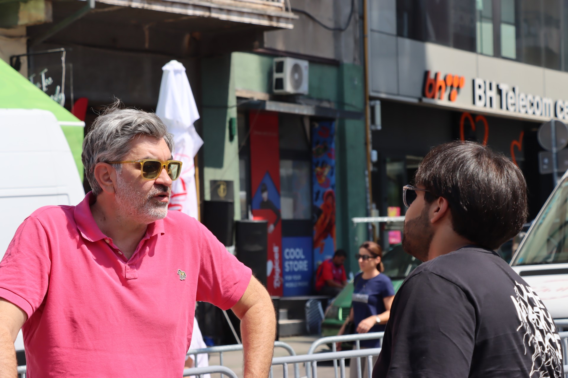Naša ekipa prošetala je Festivalskim trgom koji je spreman da ugosti domaće i svjetske zvijezde koje će prošetati po crvenom tepihu, stiliziranom poput tradicionalnog bosanskog ćilima. Na istom mjestu sreli smo dobro poznata lica poput Srđana Vuletića, Emira Hadžihafizbegovića te aktuelnog i bivšeg direktora SFF-a Jovana Marjanovića i Mirsada Purivatru.