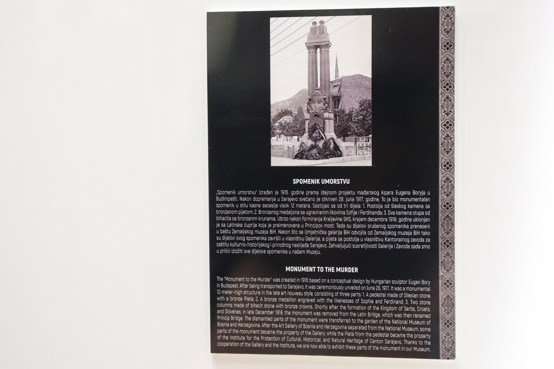 Dijelovi Spomenika Franzu i Sofiji, podignutog 1917. godine iz pijeteta prema žrtvama istorijskog Sarajevskog atentata, ponovno su izloženi, ovog puta kao stalna muzejska postavka u glavnom gradu Bosne i Hercegovine.