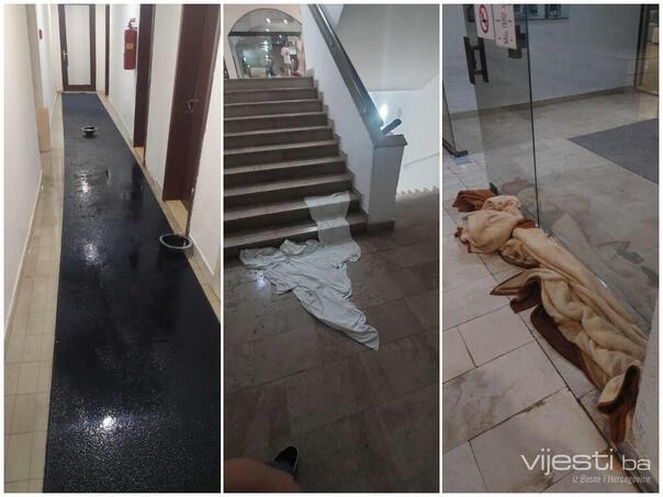 Na snimku koji je ustupljen portalu Vijesti.ba, vidi se kako se voda sliva niz zidove hotela.