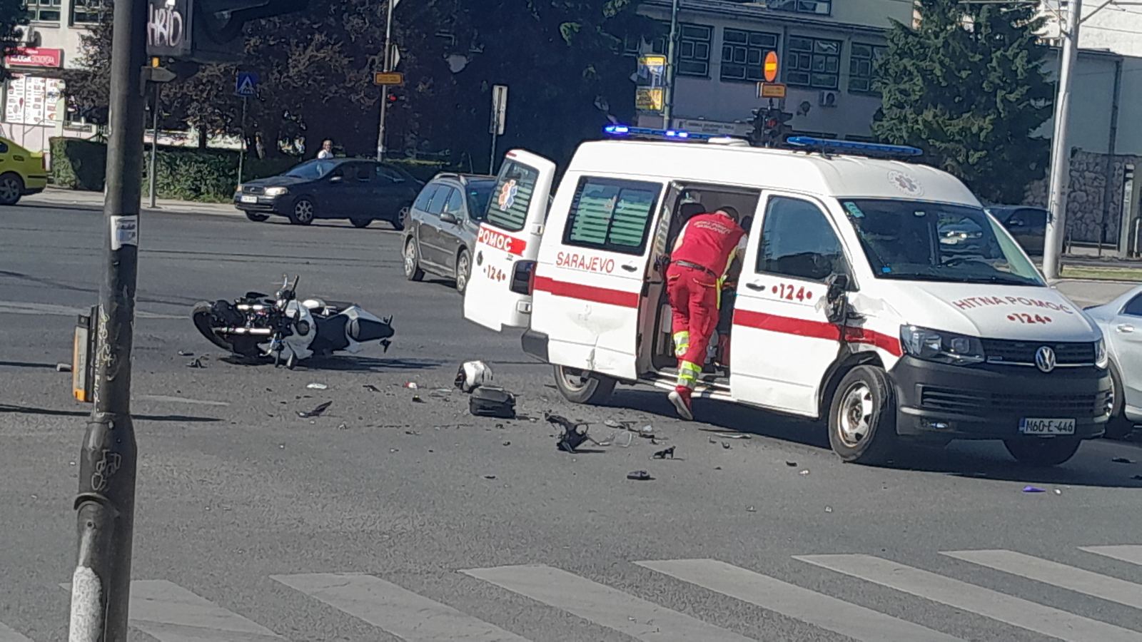 U Sarajevu se jutros dogodila saobraćajna nezgoda u kojoj su učestvovali motocikl i, kako su za Vijesti.ba nezvanično kazali iz Operativnog centra MUP-a KS, vozilo hitne pomoći.