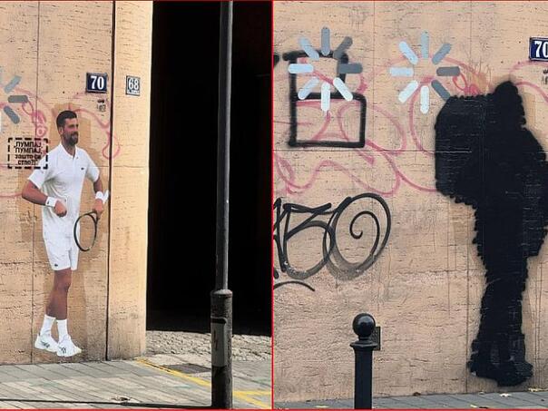 Mural posvećen Novaku Đokoviću u centru Beograda poliven je crnom farbom.