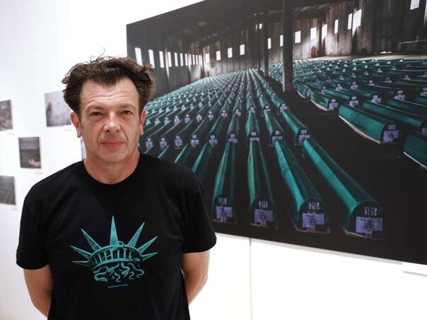 Fotograf Damir Šagolj je i danas bio u Srebrenici, ali je uspio doći na otvorenje svoje izložbe.