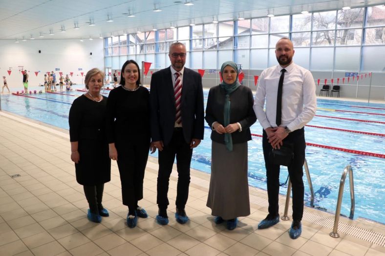 Ministrica za odgoj i obrazovanje Kantona Sarajevo Naida Hota-Muminović, načelnica Općine Novo Sarajevo Benjamina Karić te direktorica Instituta za razvoj preduniverzitetskog obrazovanja KS Senada Salihović posjetile su danas Fakultet sporta i tjelesnog odgoja (FASTO) Univerziteta u Sarajevu, gdje se za učenike četvrtih razreda osnovnih škola s područja Novog Sarajeva trenutno realizira program Škola plivanja.