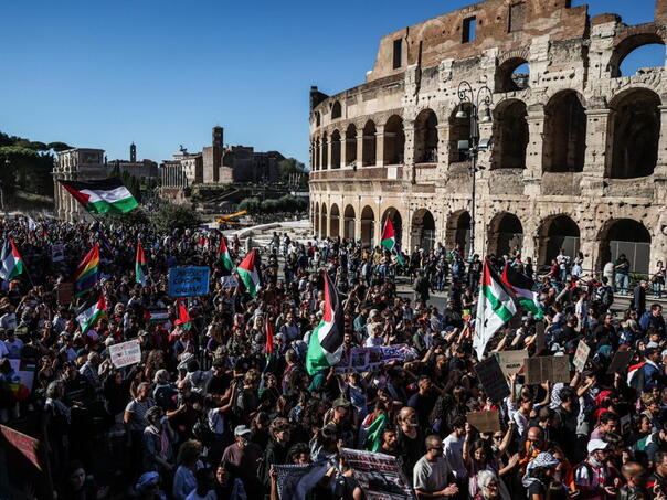 Ljudi s transparentima i palestinskim zastavama, uzvikujući “Slobodna Palestina” i druge slogane, prošli su pored Koloseja, učestvujući u maršu za koji su se organizatori nadali da će privući barem milion ljudi.