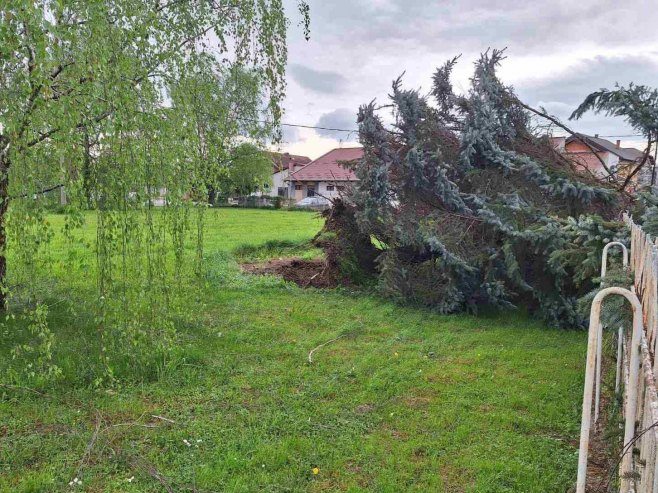 Јak vjetar u Kozarskoj Dubici iščupao je nekoliko stabala, jedno drvo palo je u parku u centru grada, a jedno kod Autobuske stanice.
