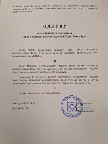 Sve je spremno i odrađeno u prepoznatljuvoj udbaškoj operaciji režima, kako bi se Igoru Dodiku uklonile sve prepreke za preuzimanjem potpune kontrole nad Partijom, ali i omogućila simbioza sa Stanivukovićem, koji je već zakazao likovanje i konferenciju za novinare u 13:00, jer su Đajić i Ljubo Ninković jedini koje napada je SNSD-u, a predstava će mu pomoći u jačanju opozicionog legitimiteta koji je izgubio potpuno nakon formiranja Pokreta za vlast sa Igorom Radojičićem i Dejanom Kojićem.