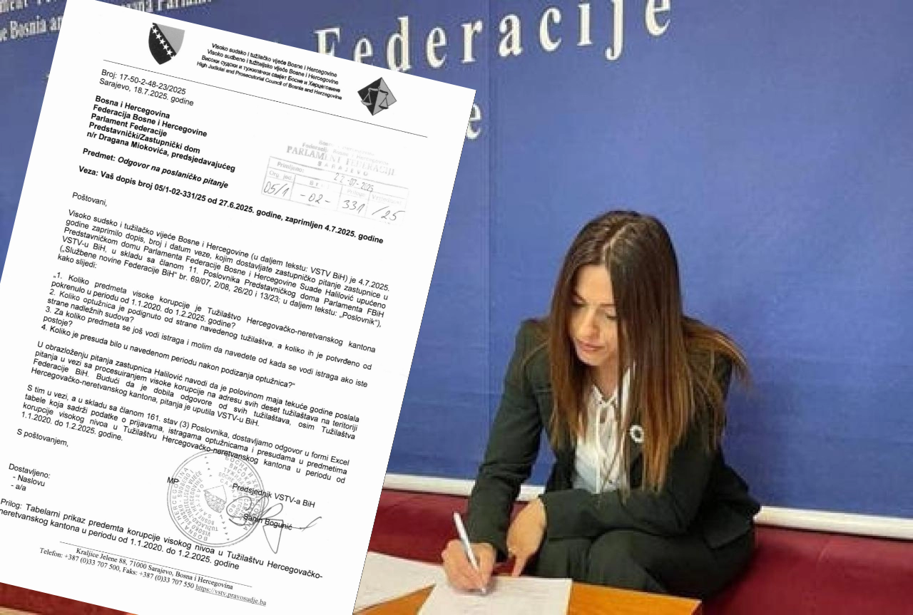 Podsjećamo, zastupnica Halilović je u martu ove godine uputila ovo zastupničko pitanje na adrese svih deset kantonalnih tužilaštava u Federaciji BiH. Tada je odgovore dobila od svih tužilaštava osim onoga iz Hercegovačko-neretvanskog kantona te je zastupnica Halilović tada navela da će se obratiti VSTV-u BiH, a što je na kraju i učinila te je ipak dobila odgovor za predmete visoke korupcije u Tužilaštvu HNK.